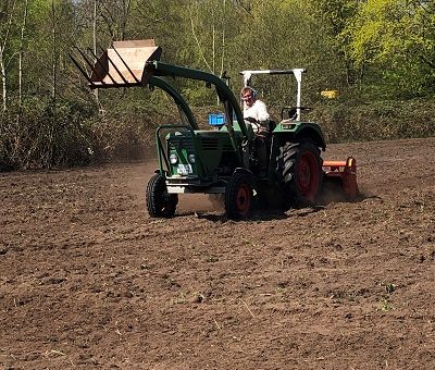 Weiter ging’s im April: Die Saatbeet der Bienen- und Insektenweide muss vorbereitet werden, d.h. sie muss gegrubbert werden. Dafür können wir einen Traktor und entsprechende Geräte nutzen, welche uns ein ehemaliger Landwirt für diese...
